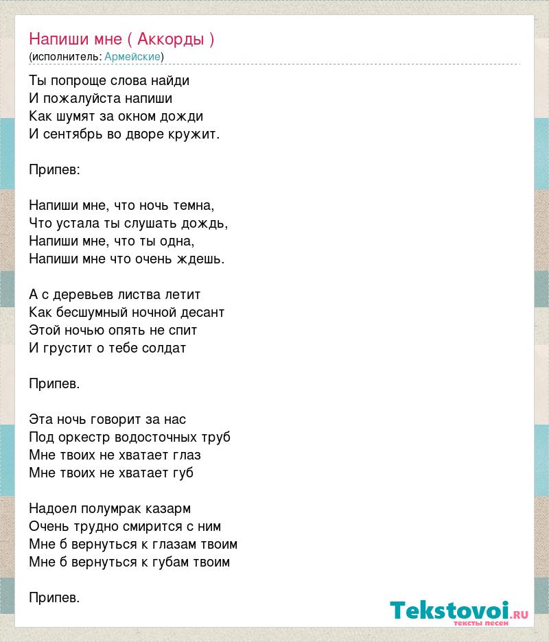 А как ты думаешь, о чем песня "Напиши мне ( Аккорды )" ?