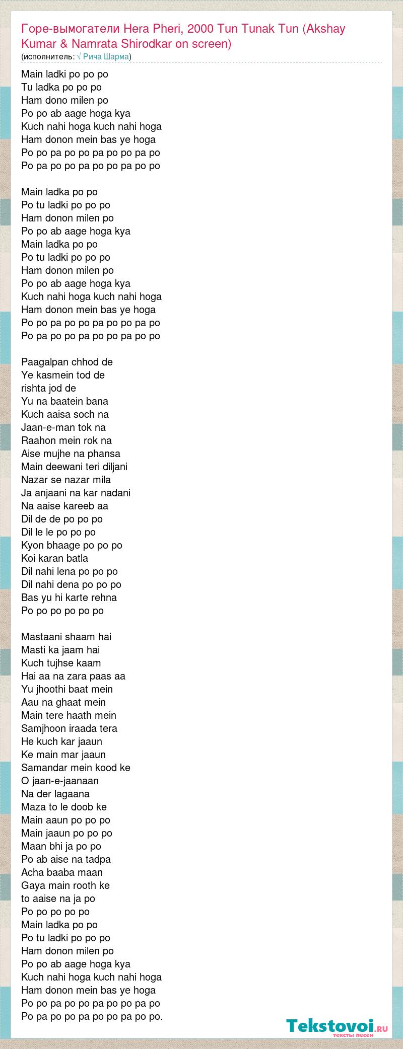 А как ты думаешь, о чем песня "Горе-вымогатели Hera Pheri, 2000 Tun Tunak Tun (Akshay Kumar & Namrata Shi" ?