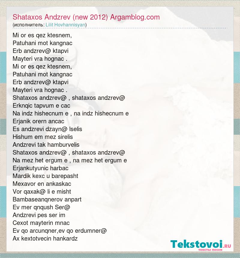 А как ты думаешь, о чем песня "Shataxos Andzrev (new 2012) Argamblog.com" ?