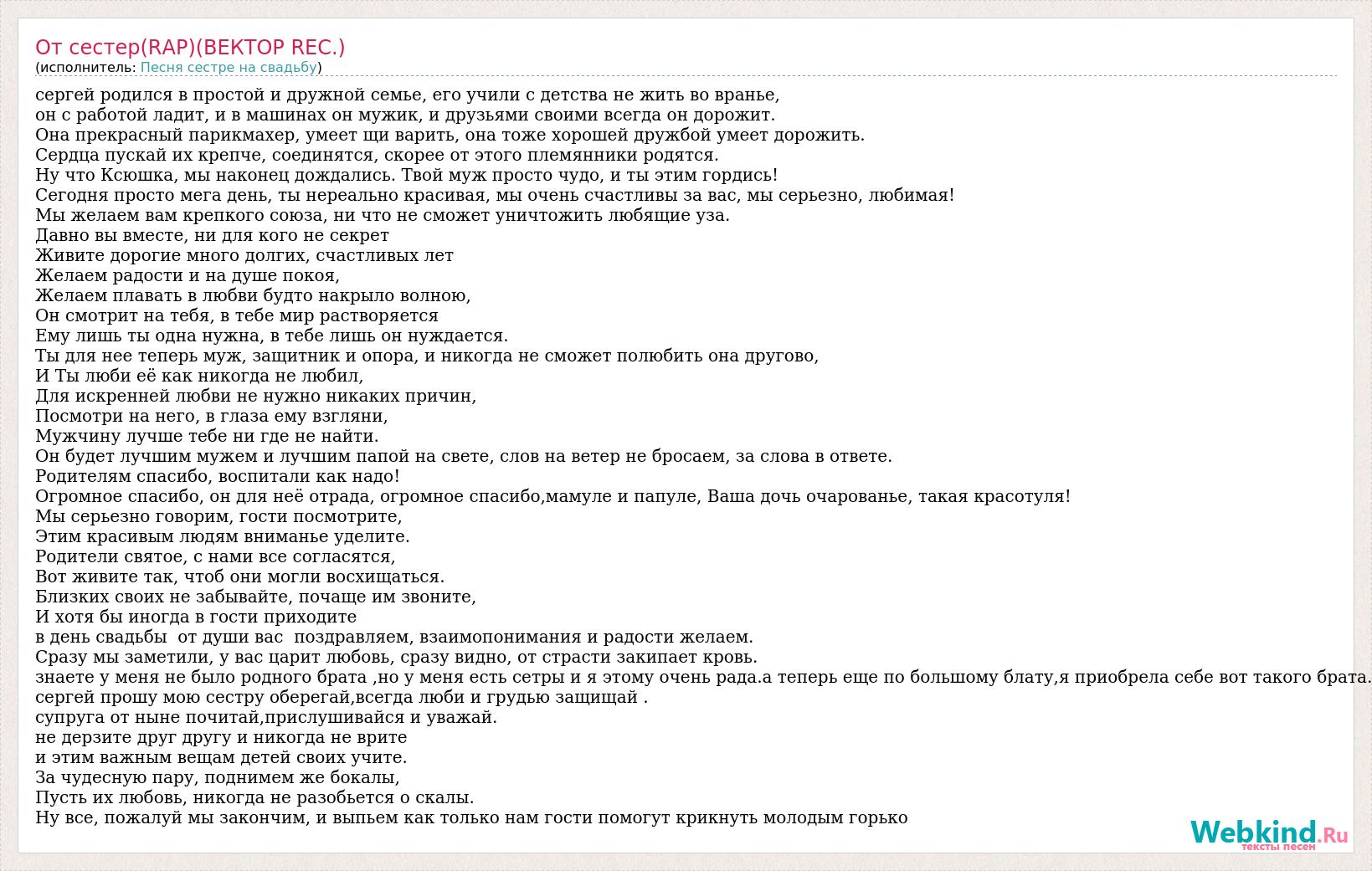 А как ты думаешь, о чем песня "От сестер(RAP)(ВЕКТОР REC.)" ?