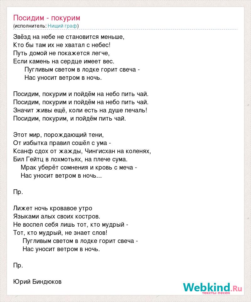 А как ты думаешь, о чем песня "Посидим - покурим" ?
