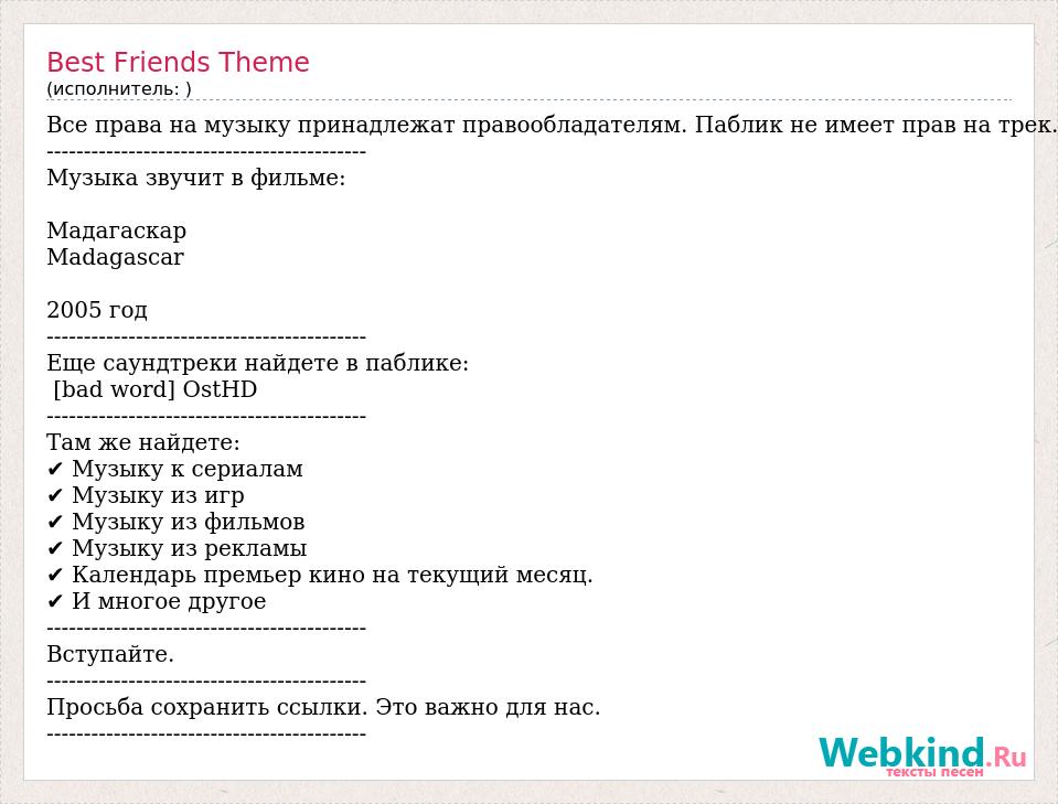 А как ты думаешь, о чем песня "Best Friends Theme" ?