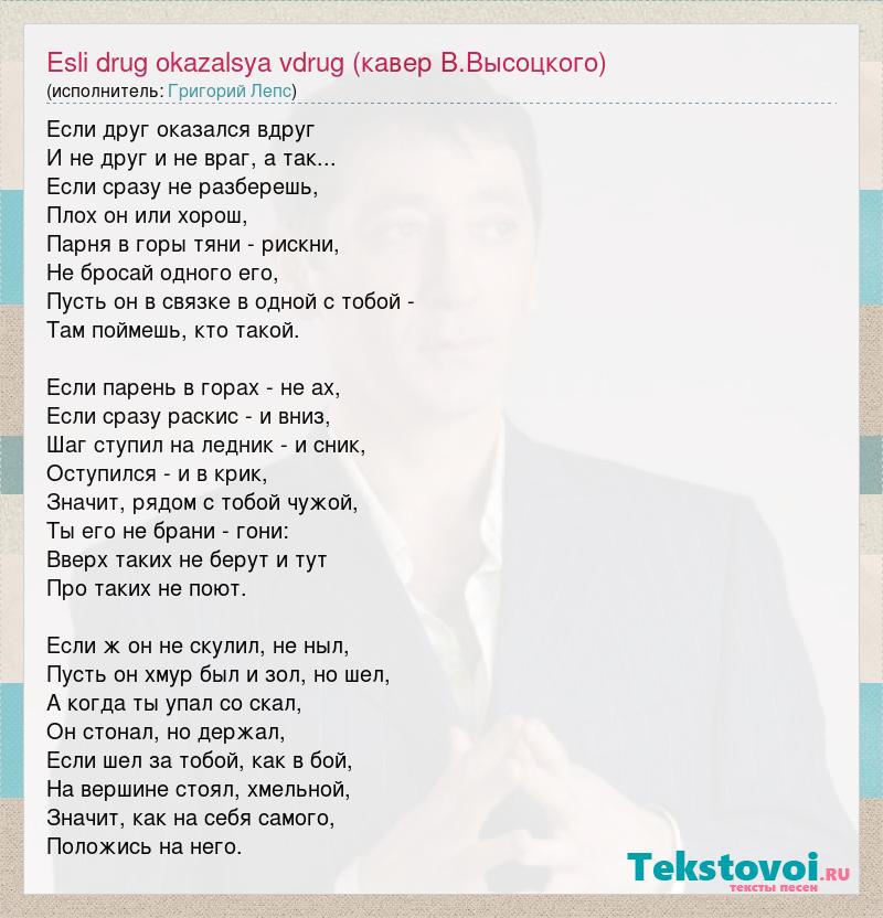 А как ты думаешь, о чем песня "Esli drug okazalsya vdrug (кавер В.Высоцкого)" ?