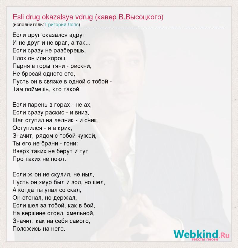А как ты думаешь, о чем песня "Esli drug okazalsya vdrug (кавер В.Высоцкого)" ?