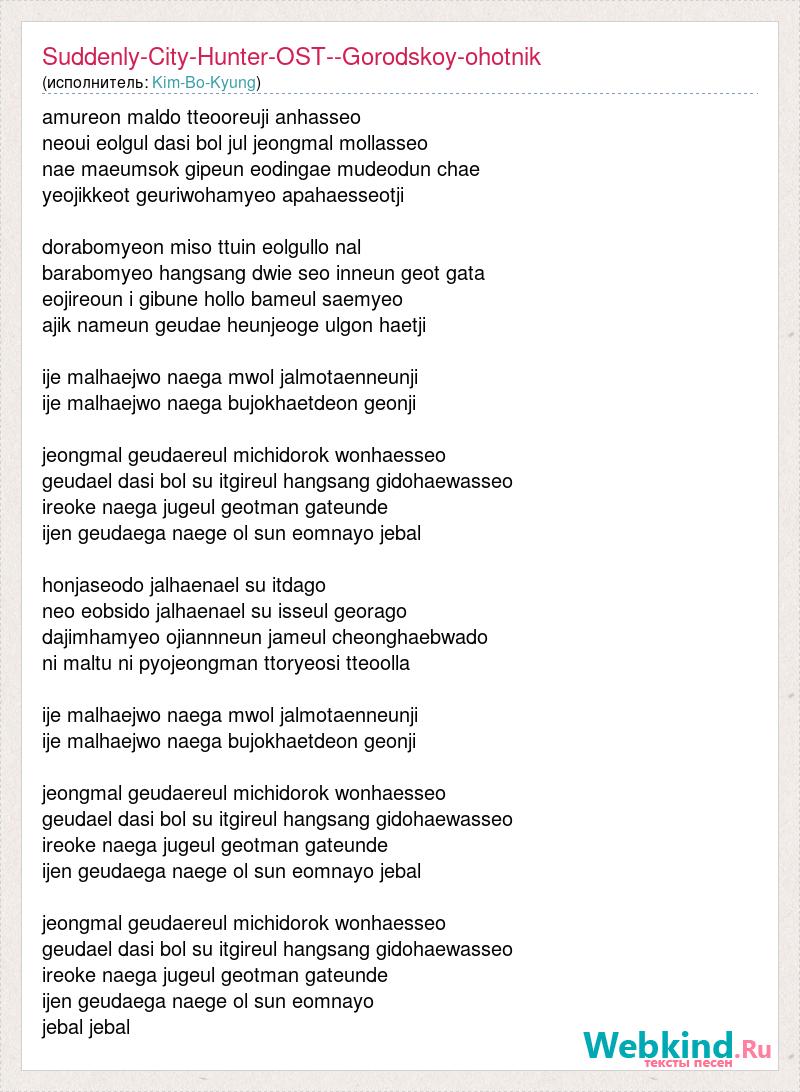 А как ты думаешь, о чем песня "Suddenly-City-Hunter-OST--Gorodskoy-ohotnik" ?