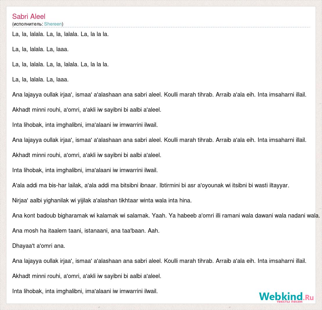 А как ты думаешь, о чем песня "Sabri Aleel" ?