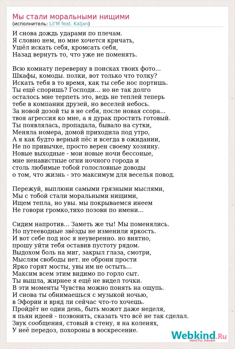 А как ты думаешь, о чем песня "Мы стали моральными нищими" ?