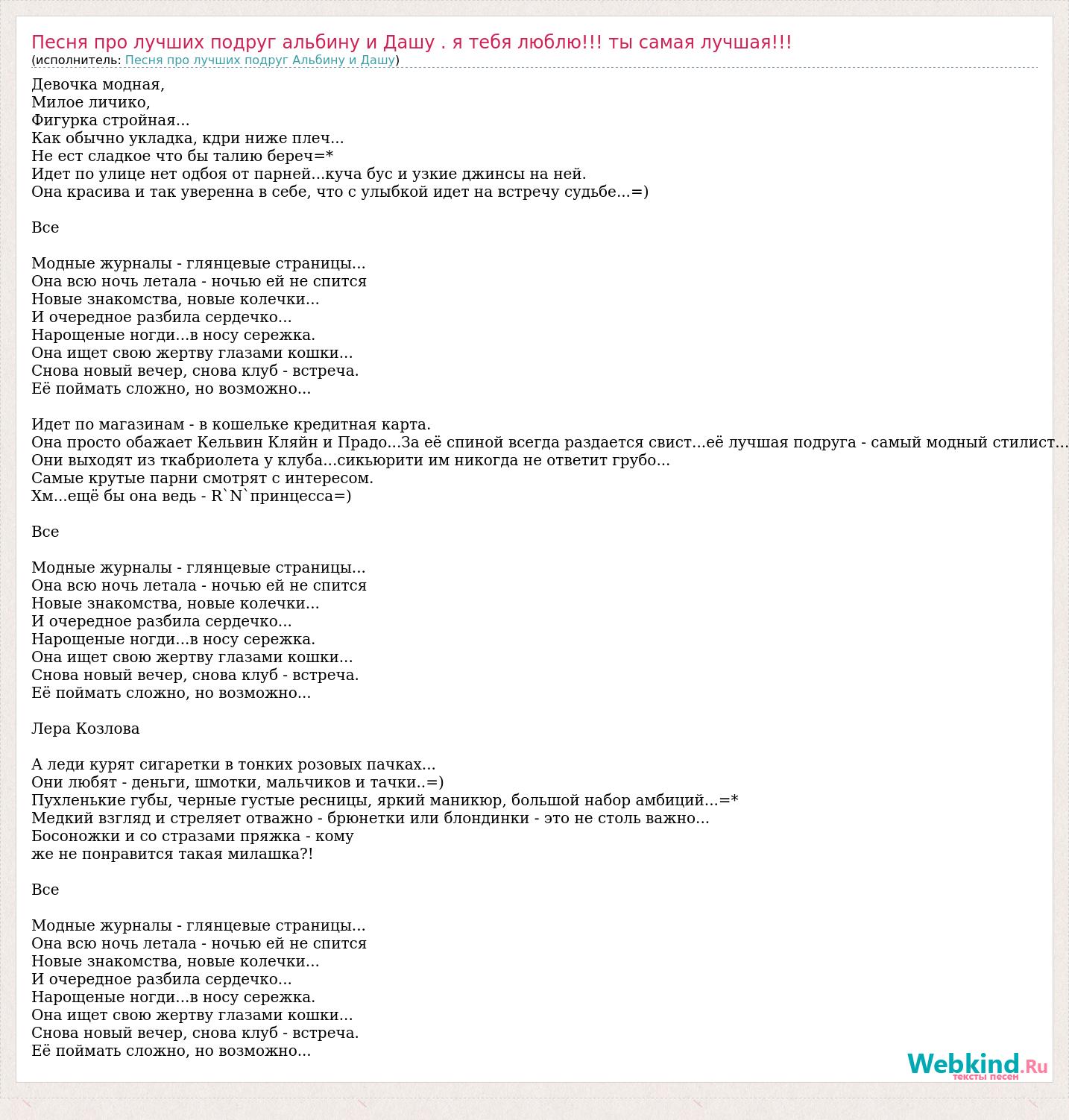 Песня про лучших подруг альбину и Дашу . я тебя люблю!!! ты самая лучш