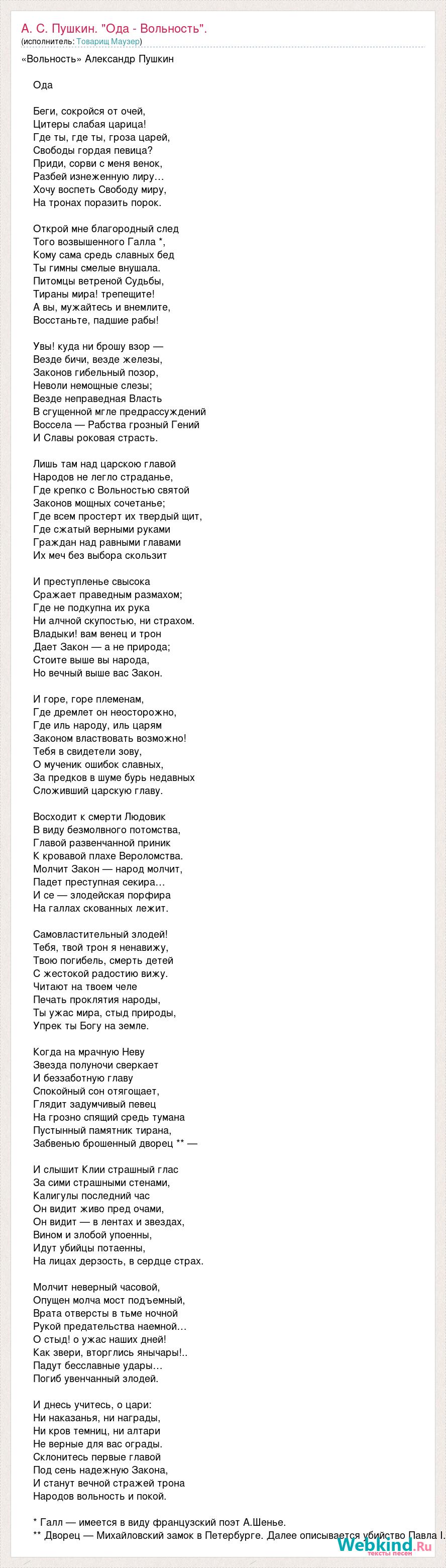 А как ты думаешь, о чем песня "А. С. Пушкин. "Ода - Вольность"." ?