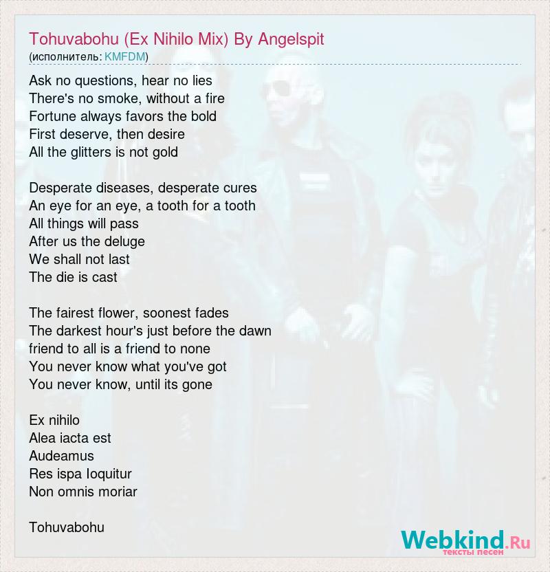 А как ты думаешь, о чем песня "Tohuvabohu (Ex Nihilo Mix) By Angelspit" ?