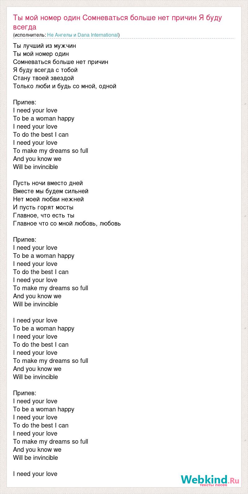 Ты мой номер один Сомневаться больше нет причин Я буду всегда