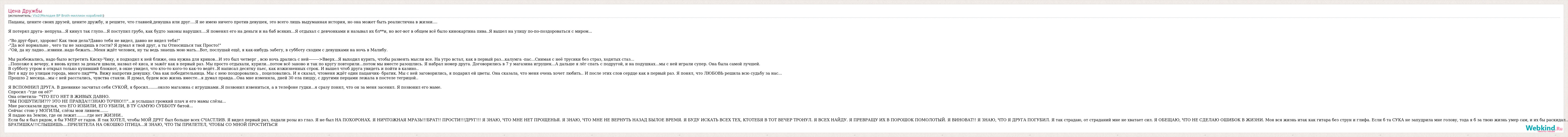 А как ты думаешь, о чем песня "Цена Дружбы" ?