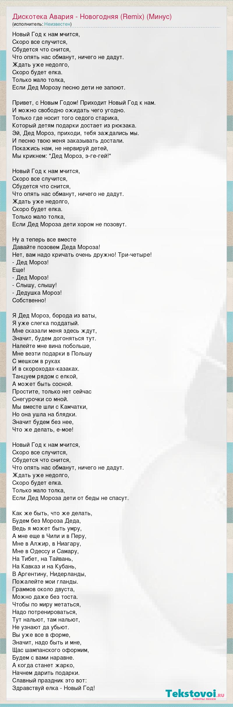 А как ты думаешь, о чем песня "Дискотека Авария - Новогодняя (Remix) (Минус)" ?
