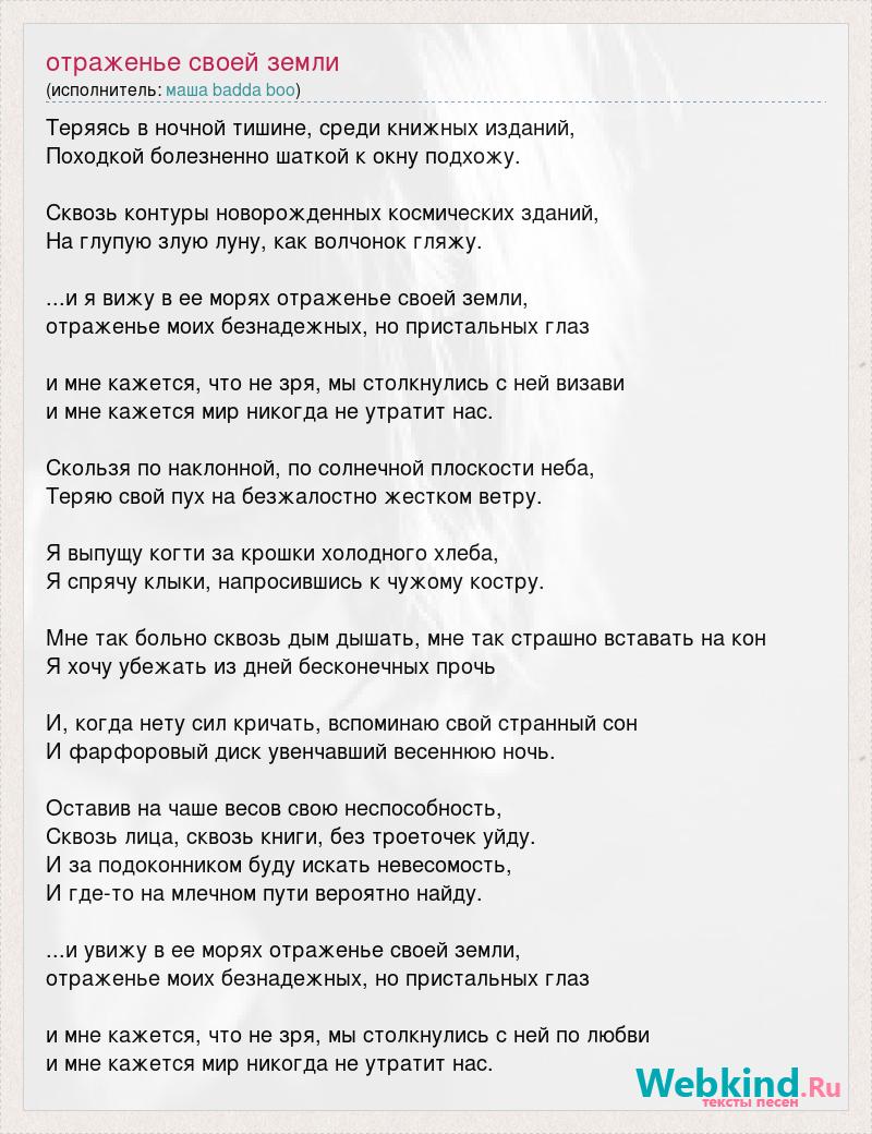 А как ты думаешь, о чем песня "Отраженье своей земли" ?