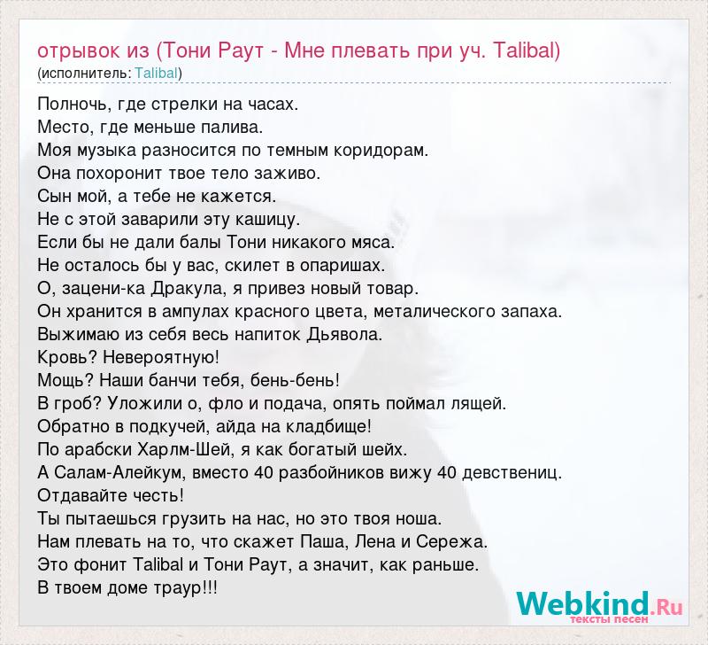 Отрывок из (Тони Раут - Мне плевать при уч. Talibal)