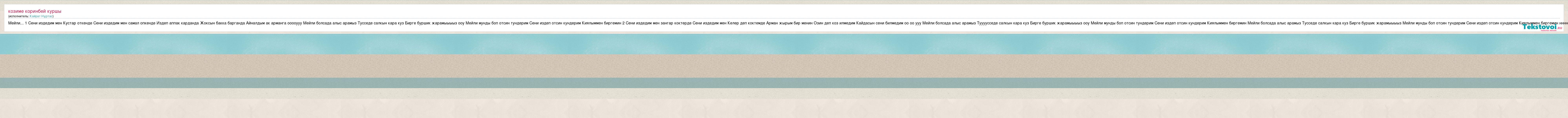Мейли... 1 Сени издедим мен Кустар откенде Сени издедим мен самал опкенде Издеп аппак карданда Жоксын бакка барганда Айналдым ак арманга ооооууу Мейли болсада алыс арамыз Тусседе салкын кара куз Бирге буршик жарамыыыыз ооу Мейли мунды боп отсин тундерим Сени издеп отсин кундерим Киялыммен биргемин 2 Сени издедим мен зангар коктерде Сени издедим мен Келер деп коктемде Арман жырым бир менин Озин деп коз илмедим Кайдасын сени билмедим оо оо ууу Мейли болсада алыс арамыз Туууусседе салкын кара куз Бирге буршик жарамыыыыз ооу Мейли мунды боп отсин тундерим Сени издеп отсин кундерим Киялыммен биргемин Мейли болсада алыс арамыз Тусседе салкын кара куз Бирге буршик жарамыыыыз Мейли мунды боп отсин тундерим Сени издеп отсин кундерим Киялыммен биргемин нннн
