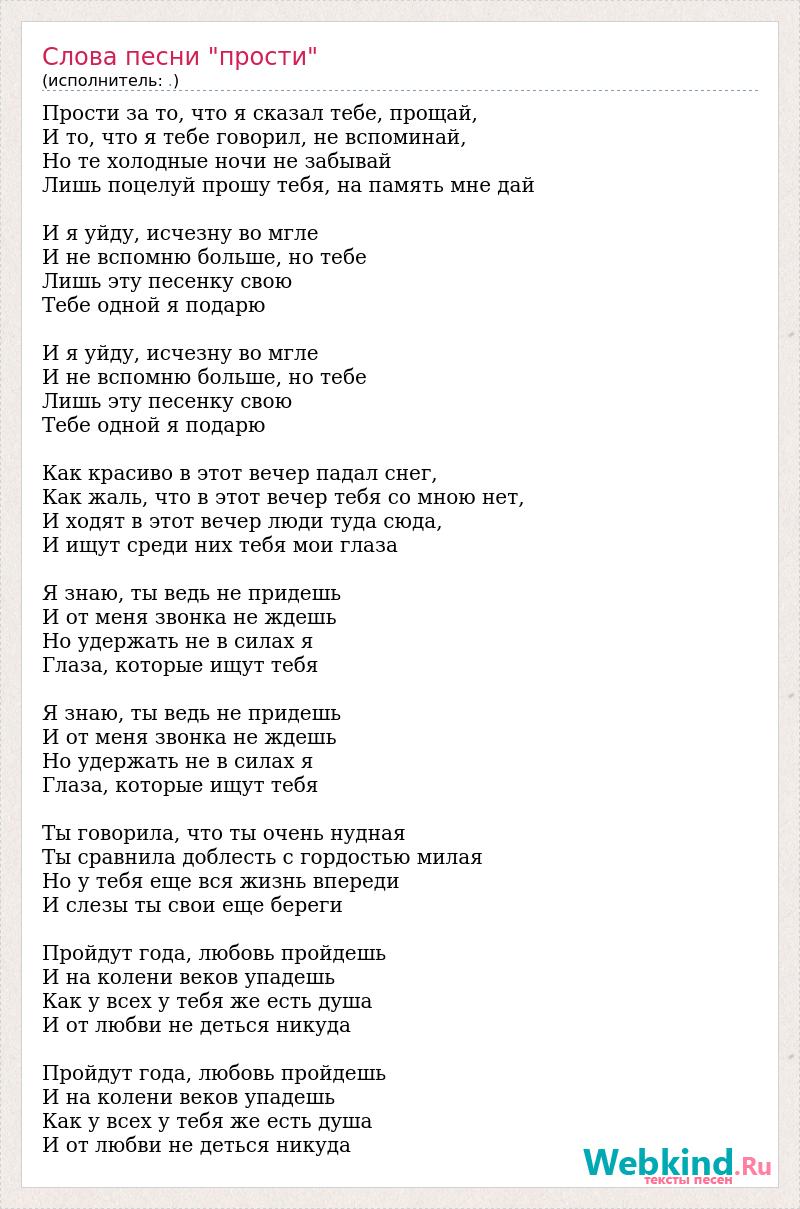 А как ты думаешь, о чем песня "Слова песни "прости"" ?