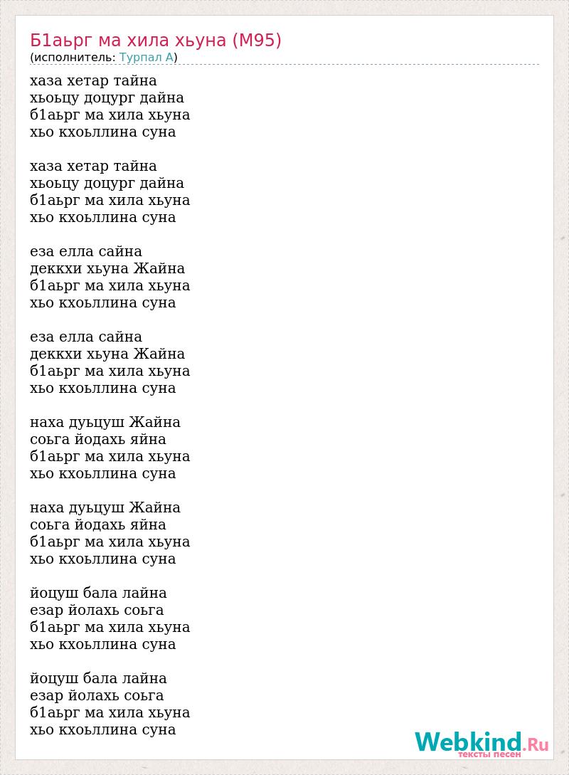 А как ты думаешь, о чем песня "Б1аьрг ма хила хьуна (M95)" ?