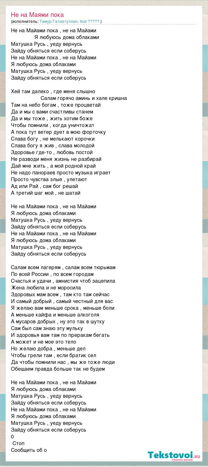 А как ты думаешь, о чем песня "Не на Маями пока" ?