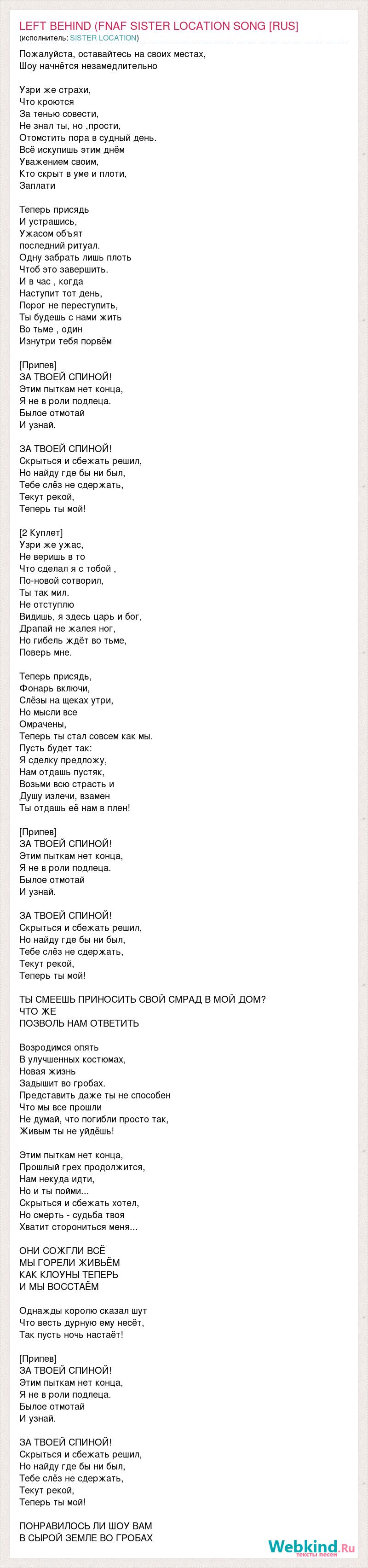 LEFT BEHIND (FNAF SISTER LOCATION SONG [RUS]