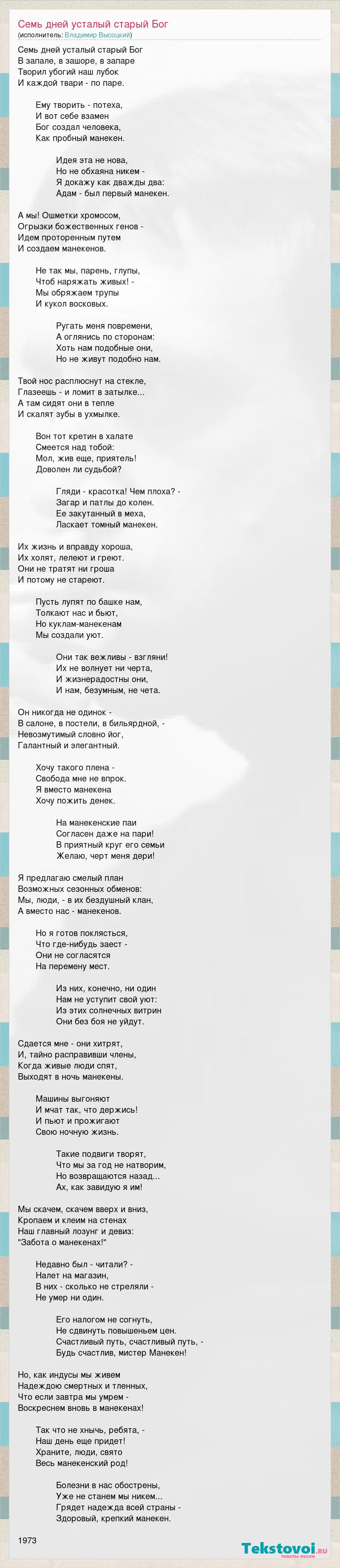 А как ты думаешь, о чем песня "Семь дней усталый старый Бог" ?