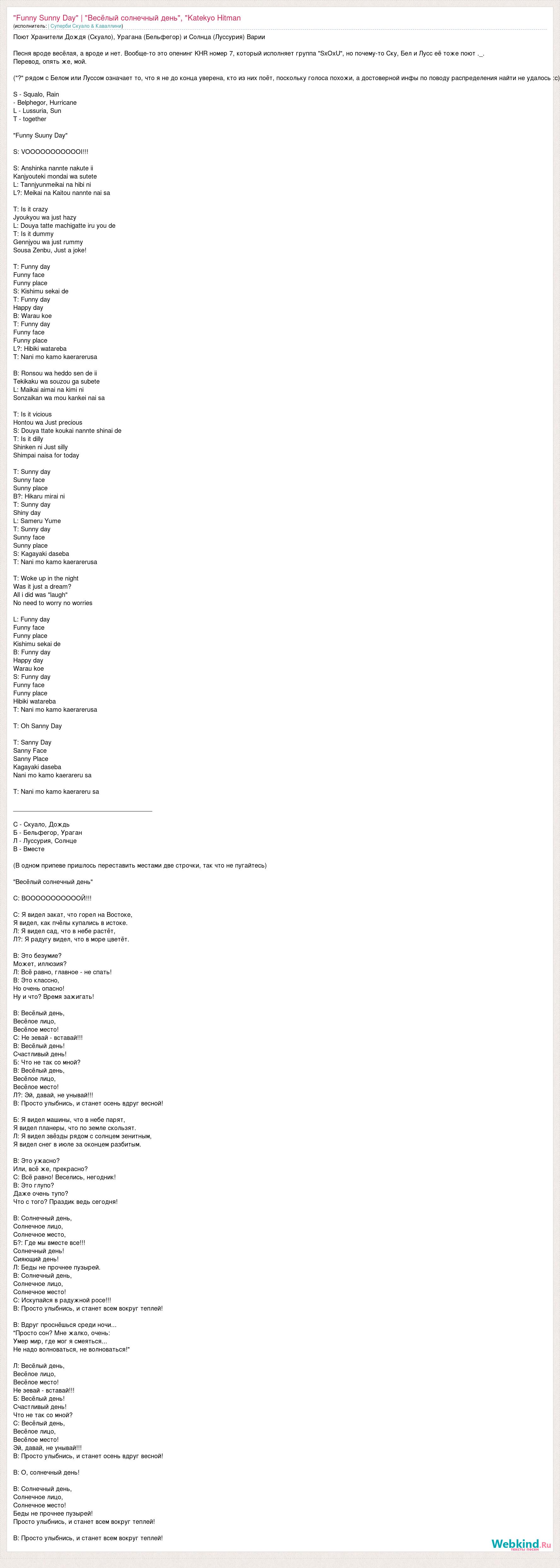 А как ты думаешь, о чем песня ""Funny Sunny Day" | "Весёлый солнечный день", "Katekyo Hitman" ?