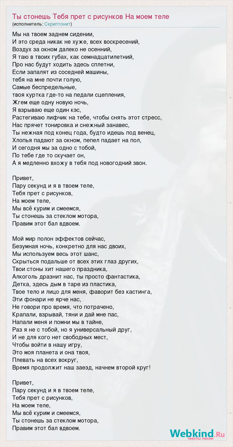 А как ты думаешь, о чем песня "Ты стонешь Тебя прет с рисунков На моем теле" ?