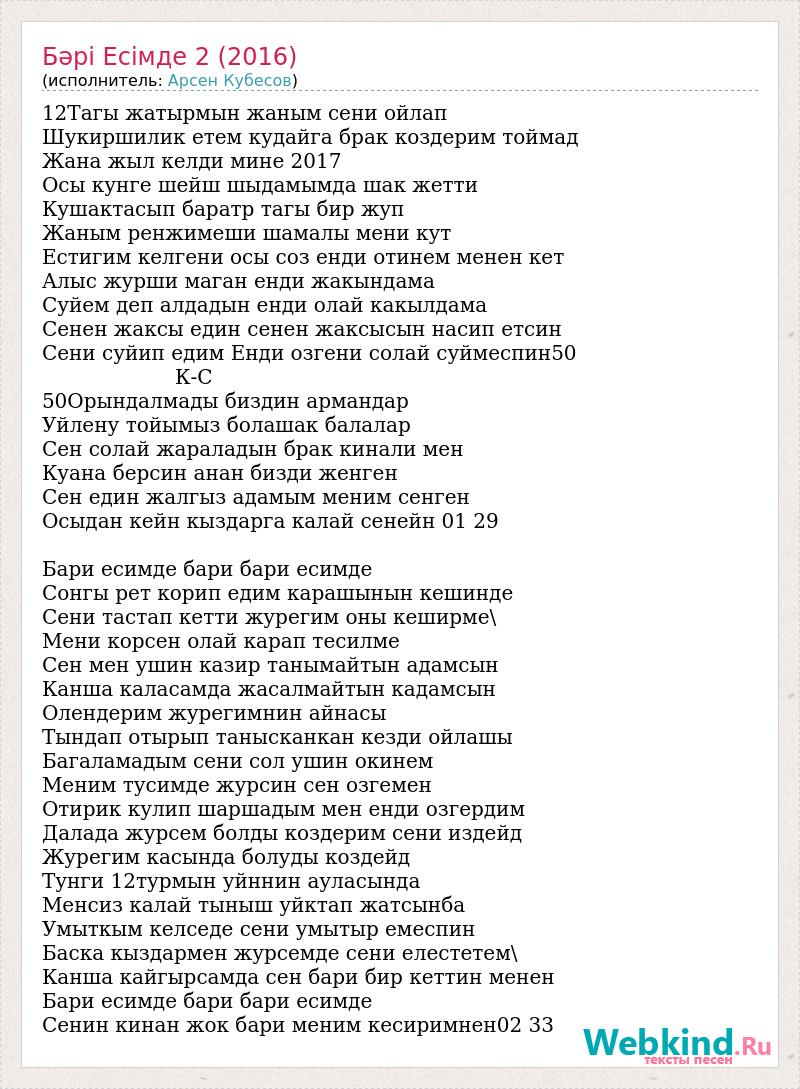 А как ты думаешь, о чем песня "Бəрі Есімде 2 (2016)" ?