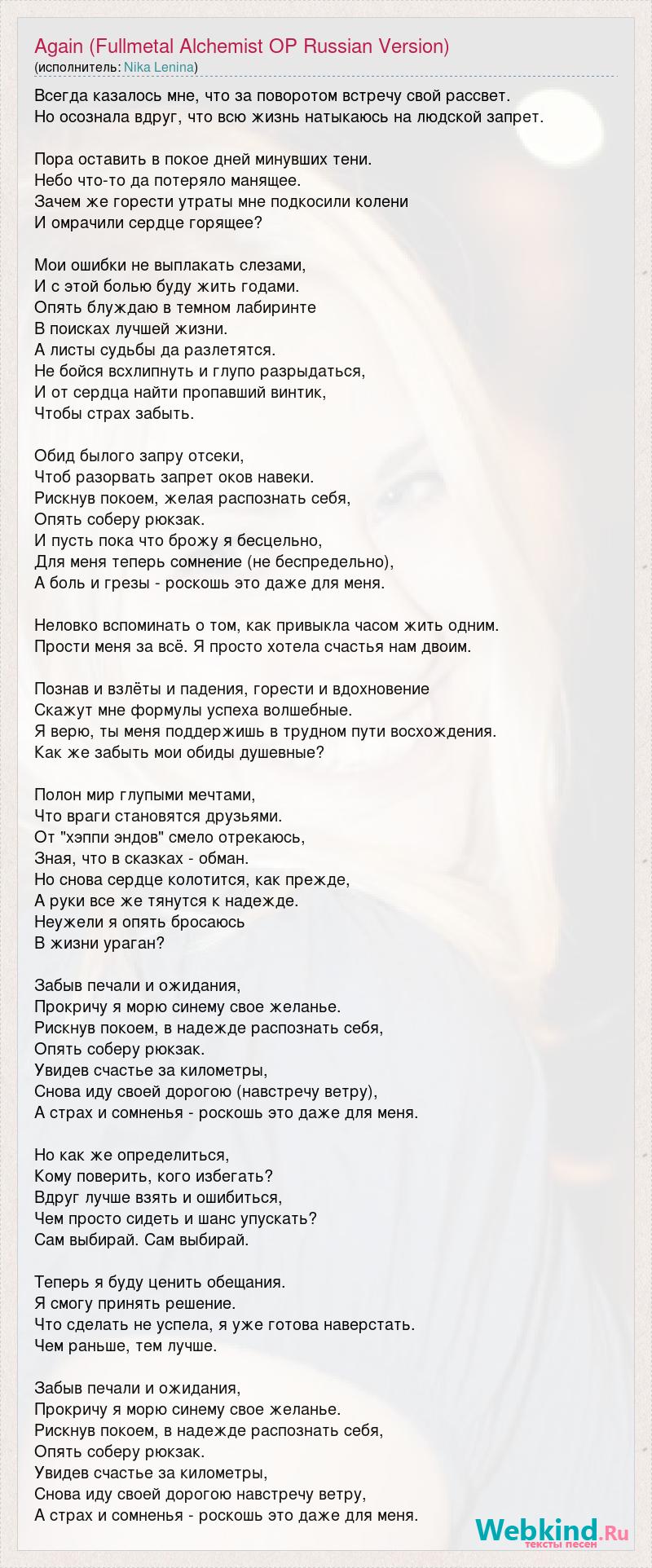 А как ты думаешь, о чем песня "Again (Fullmetal Alchemist OP Russian Version)" ?