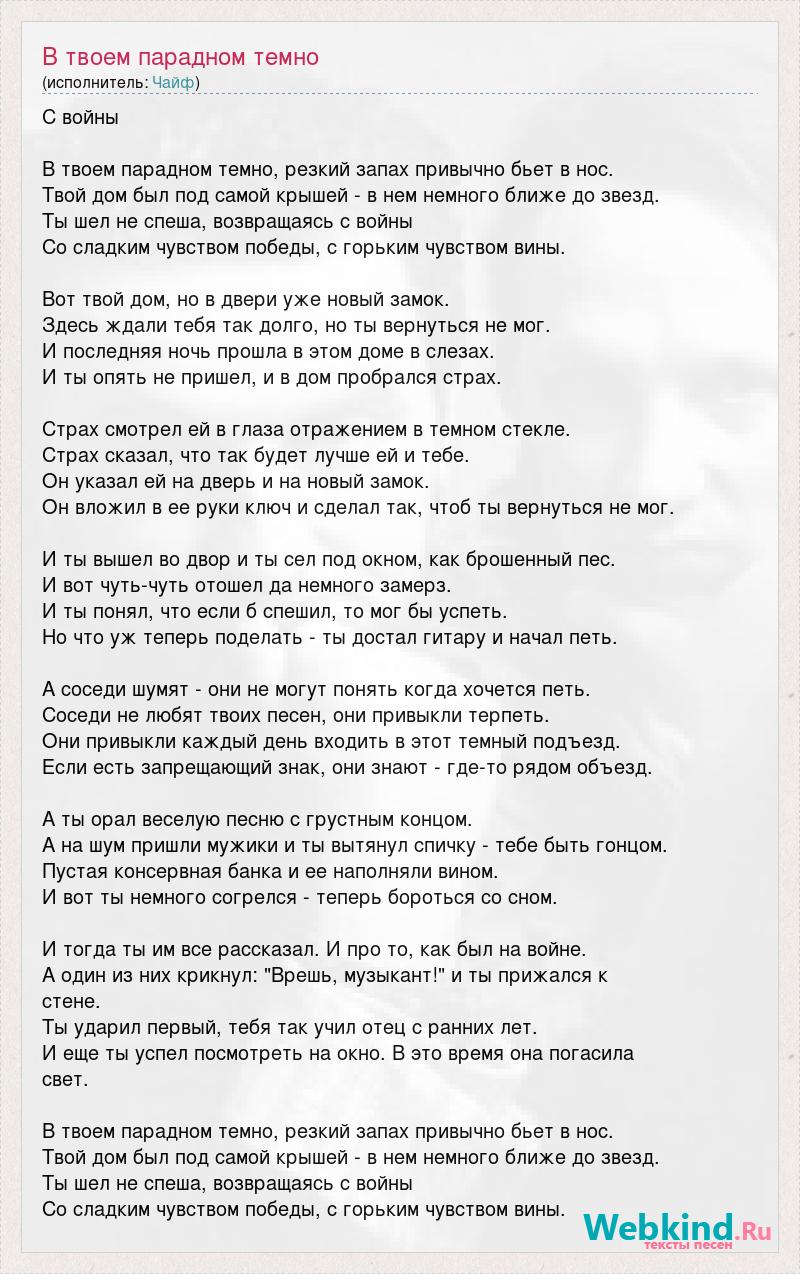А как ты думаешь, о чем песня "В твоем парадном темно" ?