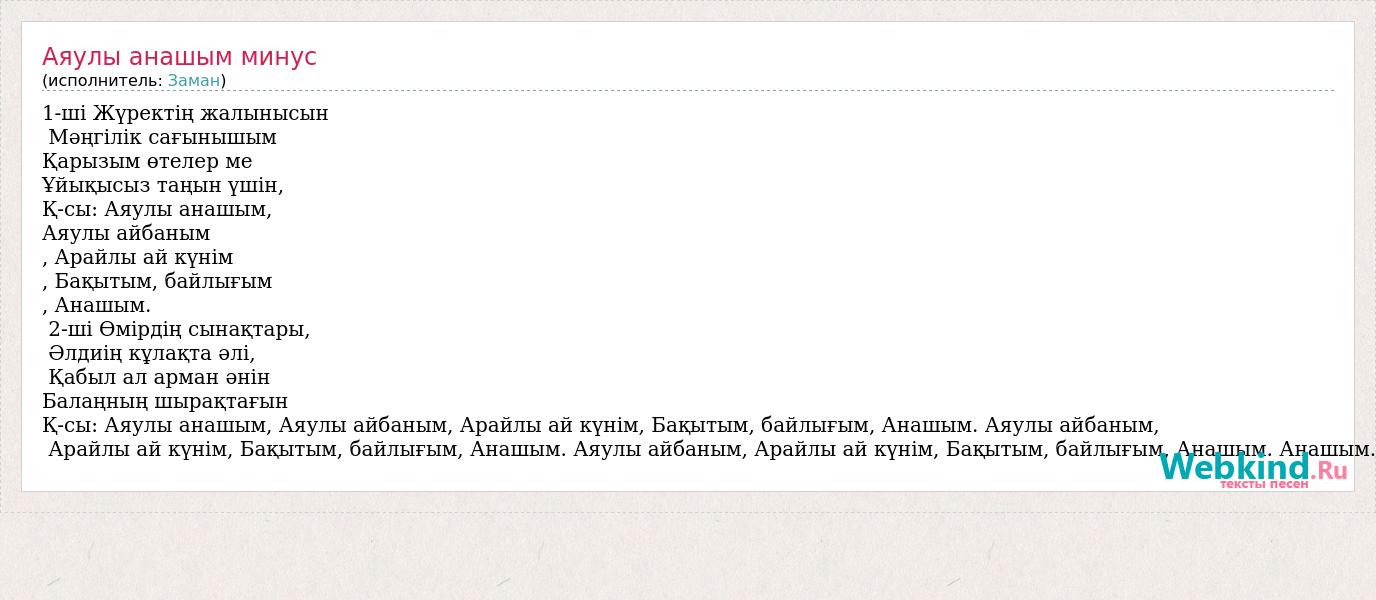 Аяулы анашым минус