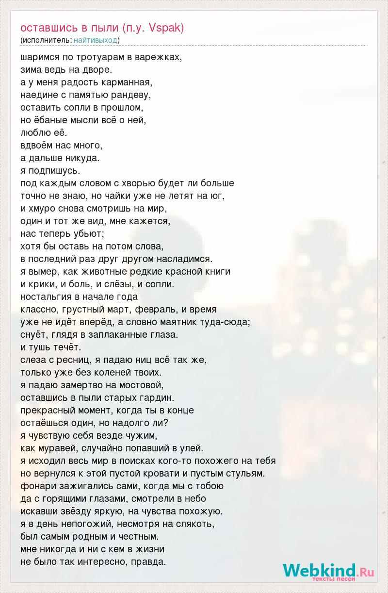 А как ты думаешь, о чем песня "Оставшись в пыли (п.у. Vspak)" ?