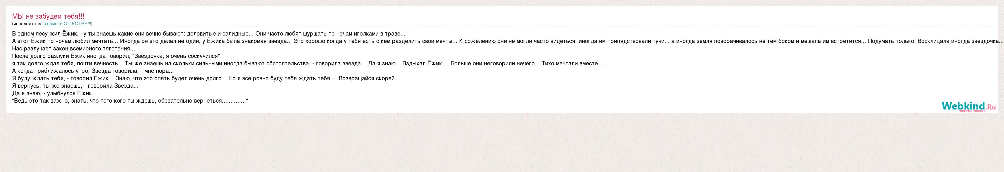 А как ты думаешь, о чем песня "МЫ не забудем тебя!!!" ?