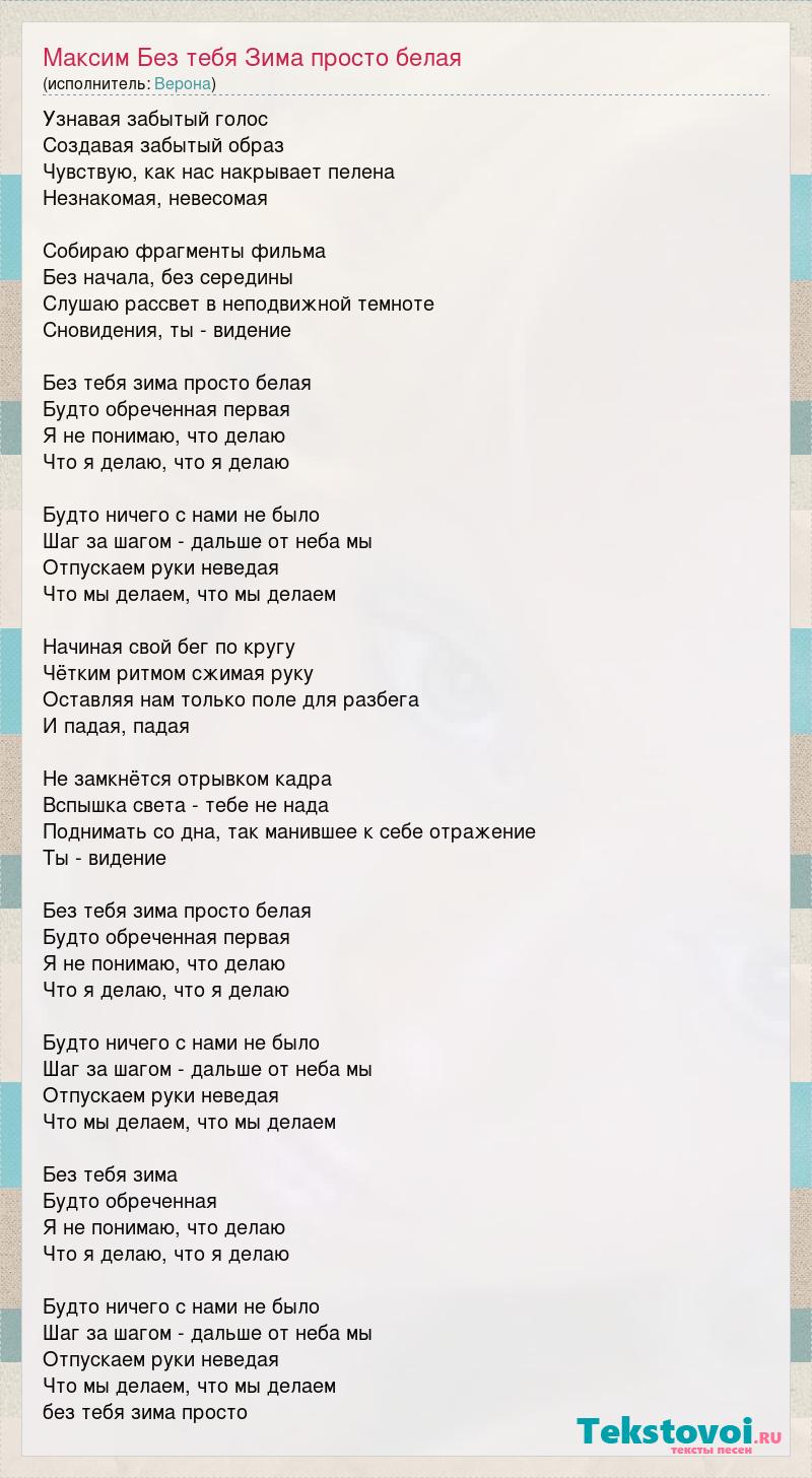 А как ты думаешь, о чем песня "Максим Без тебя Зима просто белая" ?