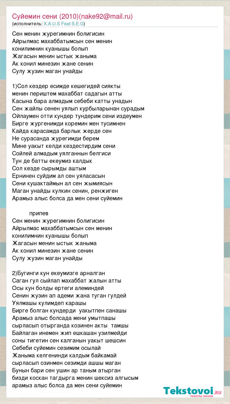 А как ты думаешь, о чем песня "Суйемин сени (2010)(nake92@mail.ru)" ?