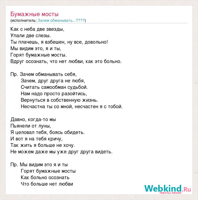 А как ты думаешь, о чем песня "Бумажные мосты" ?