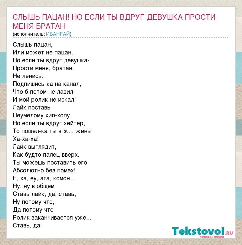 СЛЫШЬ ПАЦАН! НО ЕСЛИ ТЫ ВДРУГ ДЕВУШКА ПРОСТИ МЕНЯ БРАТАН