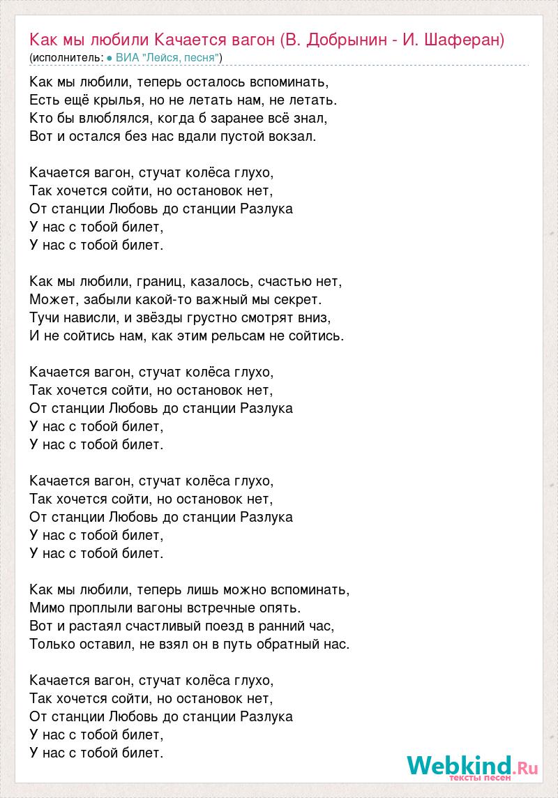 А как ты думаешь, о чем песня "Как мы любили Качается вагон (В. Добрынин - И. Шаферан)" ?