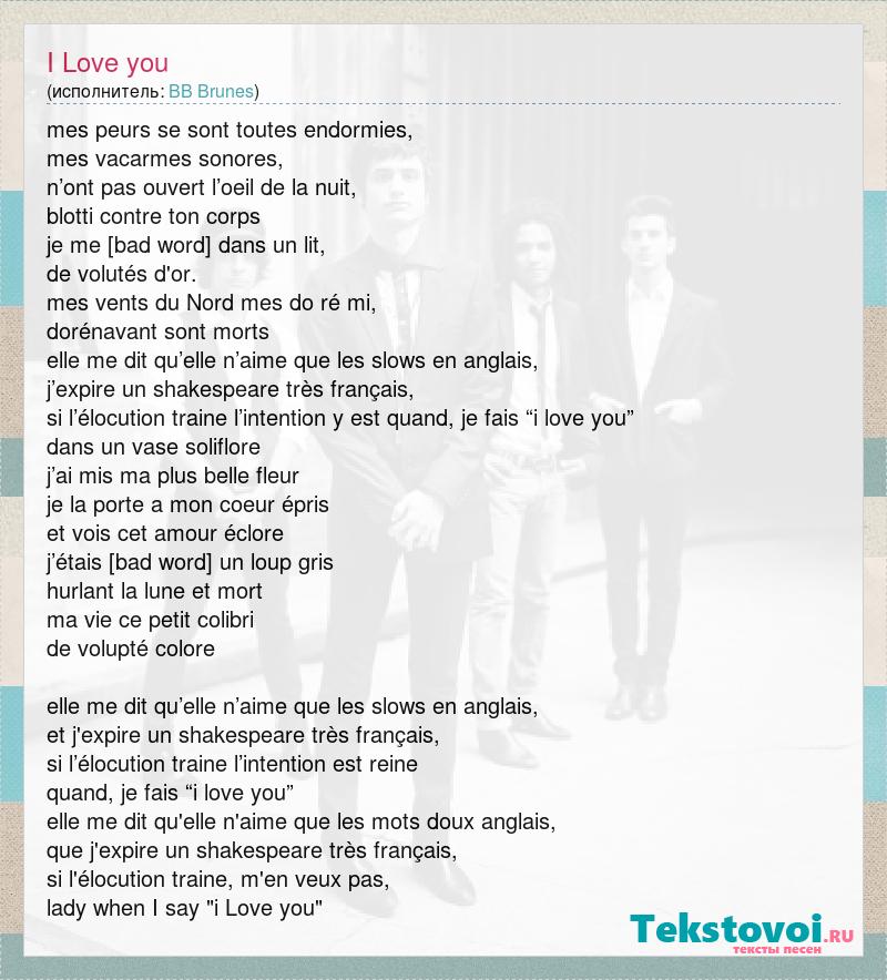 mes peurs se sont toutes endormies, mes vacarmes sonores, n’ont pas ouvert l’oeil de la nuit, blotti contre ton corps je me sens comme dans un lit, de volutés d'or. mes vents du Nord mes do ré mi, dorénavant sont morts elle me dit qu’elle n’aime que les slows en anglais, j’expire un shakespeare très français, si l’élocution traine l’intention y est quand, je fais “i love you” dans un vase soliflore j’ai mis ma plus belle fleur je la porte a mon coeur épris et vois cet amour éclore j’étais hier comme un loup gris hurlant la lune et mort ma vie ce petit colibri de volupté colore elle me dit qu’elle n’aime que les slows en anglais, et j'expire un shakespeare très français, si l’élocution traine l’intention est reine quand, je fais “i love you” elle me dit qu'elle n'aime que les mots doux anglais, que j'expire un shakespeare très français, si l'élocution traine, m'en veux pas, lady when I say "i Love you"