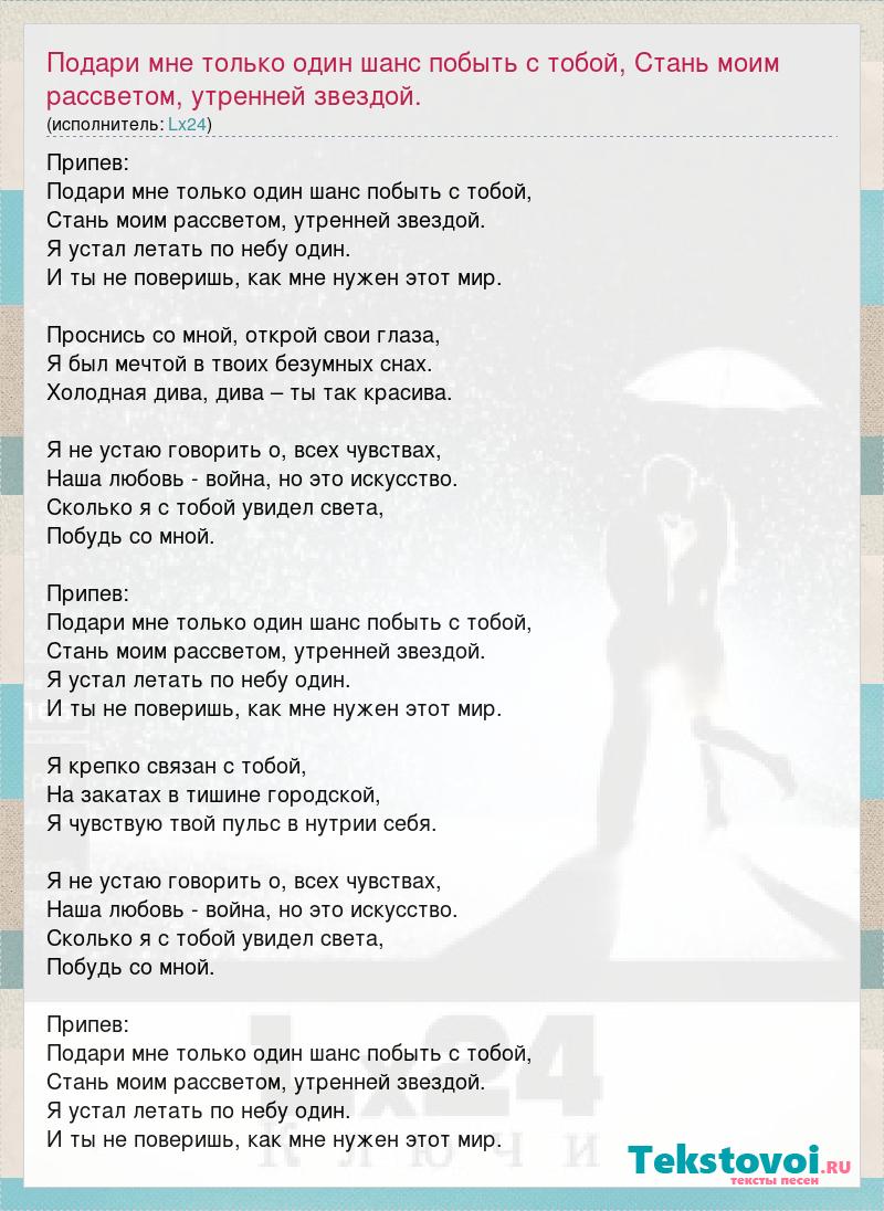 Главная→Исполнители→Lx24→Подари мне только один шанс побыть с тобой, Стань моим рассветом, утренней зве