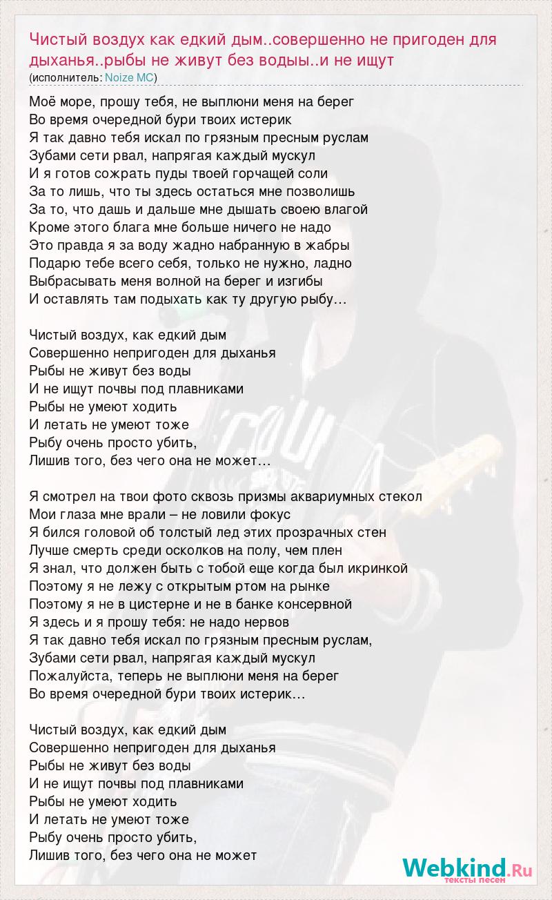Главная→Исполнители→Noize MC→Чистый воздух как едкий дым..совершенно не пригоден для дыханья..рыбы не