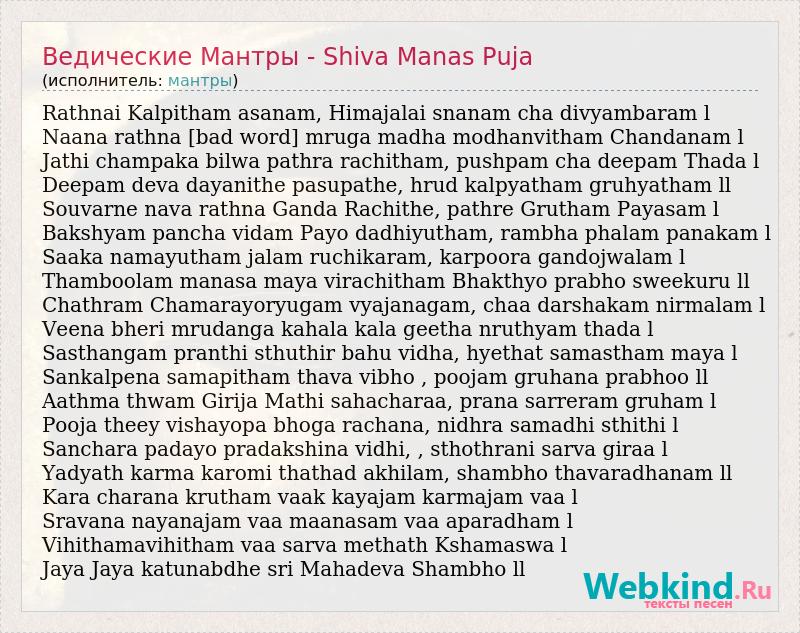 А как ты думаешь, о чем песня "Ведические Мантры - Shiva Manas Puja" ?