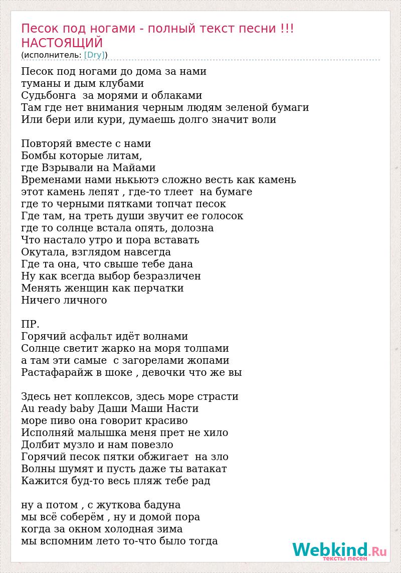 Песок под ногами - полный текст песни !!! НАСТОЯЩИЙ