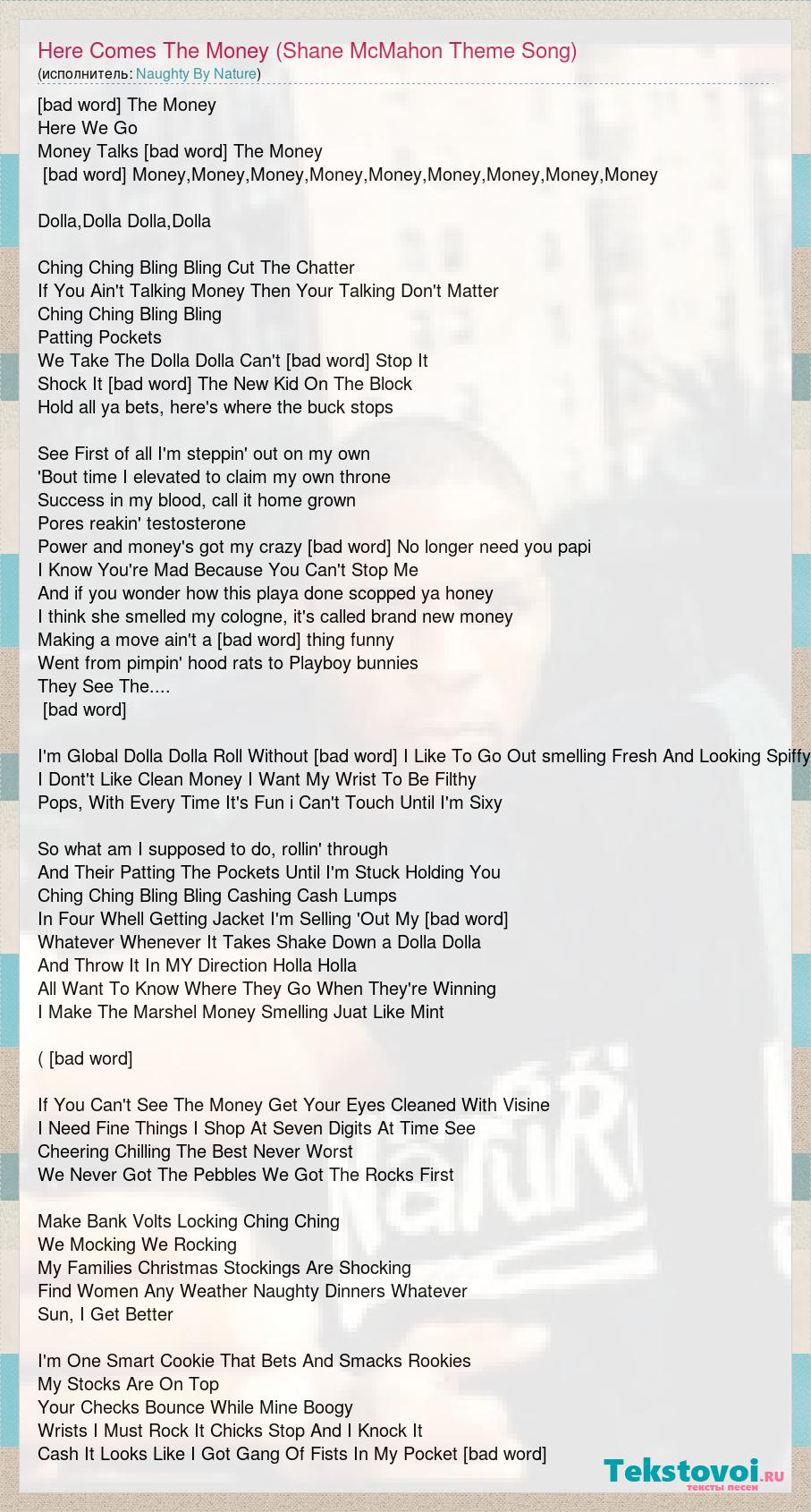 А как ты думаешь, о чем песня "Here Comes The Money (Shane McMahon Theme Song)" ?
