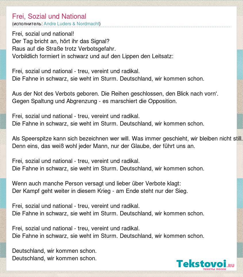А как ты думаешь, о чем песня "Frei, Sozial und National" ?