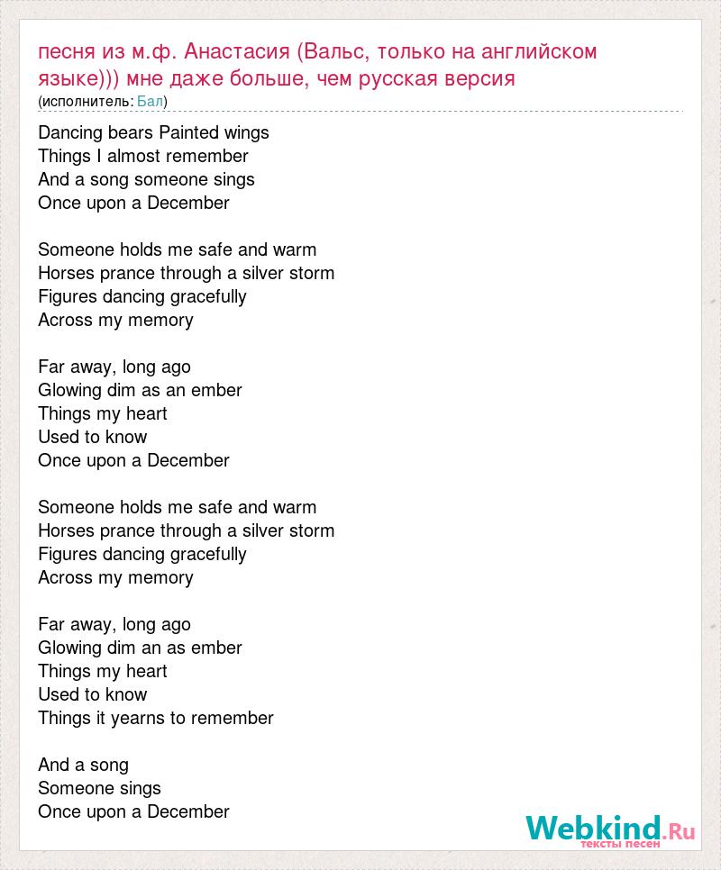 Песня из м.ф. Анастасия (Вальс, только на английском языке))) мне даже б