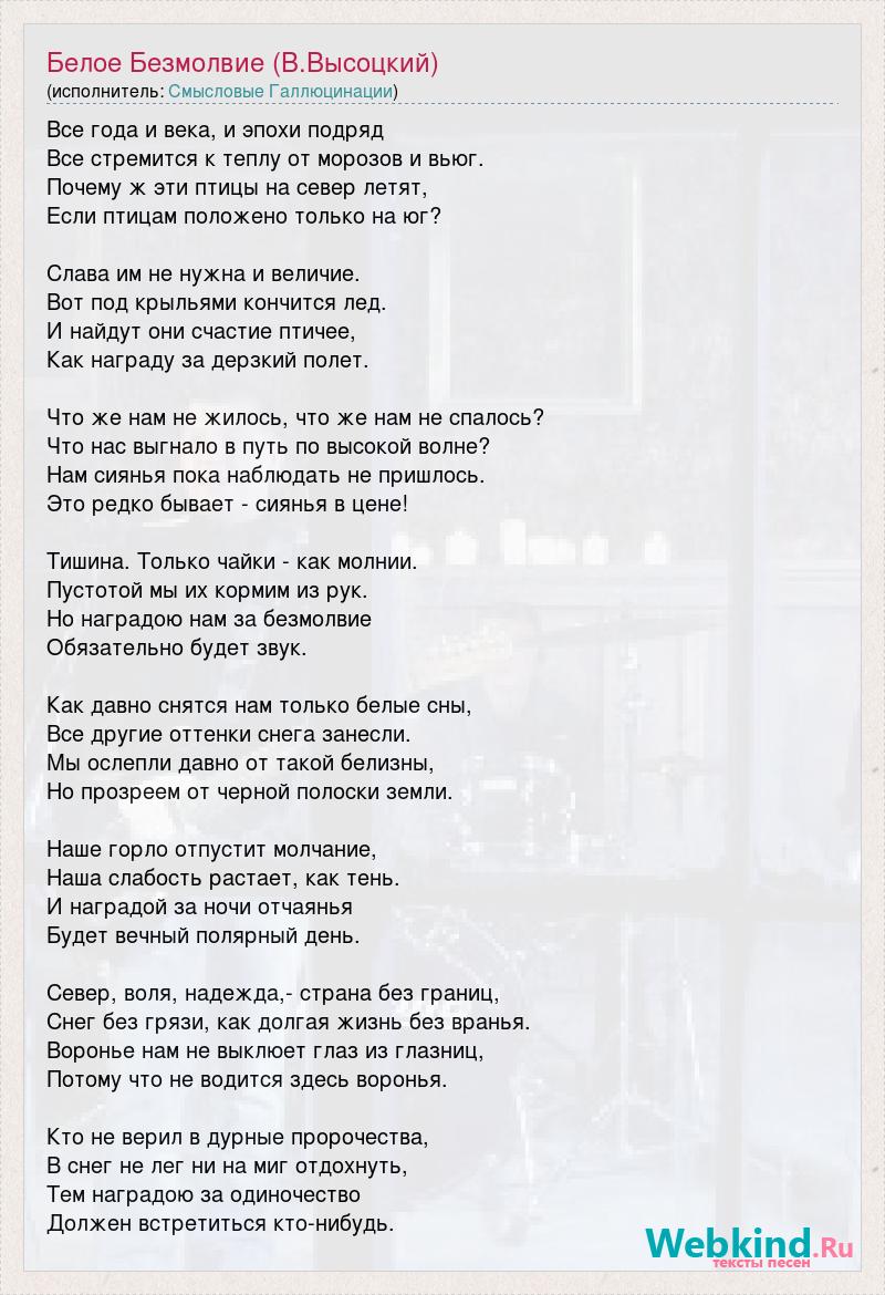 А как ты думаешь, о чем песня "Белое Безмолвие (В.Высоцкий)" ?