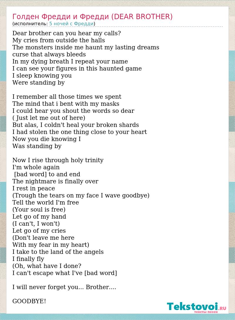 А как ты думаешь, о чем песня "Голден Фредди и Фредди (DEAR BROTHER)" ?