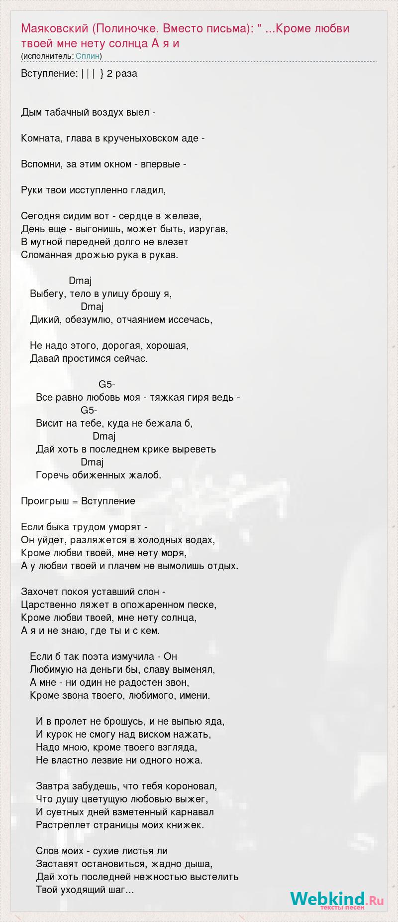 Маяковский (Полиночке. Вместо письма): " ...Кроме любви твоей мне нету