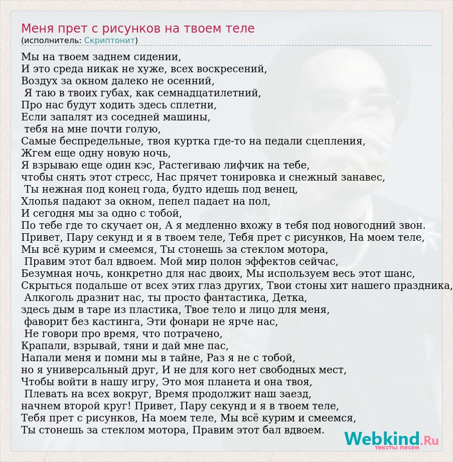 А как ты думаешь, о чем песня "Меня прет с рисунков на твоем теле" ?